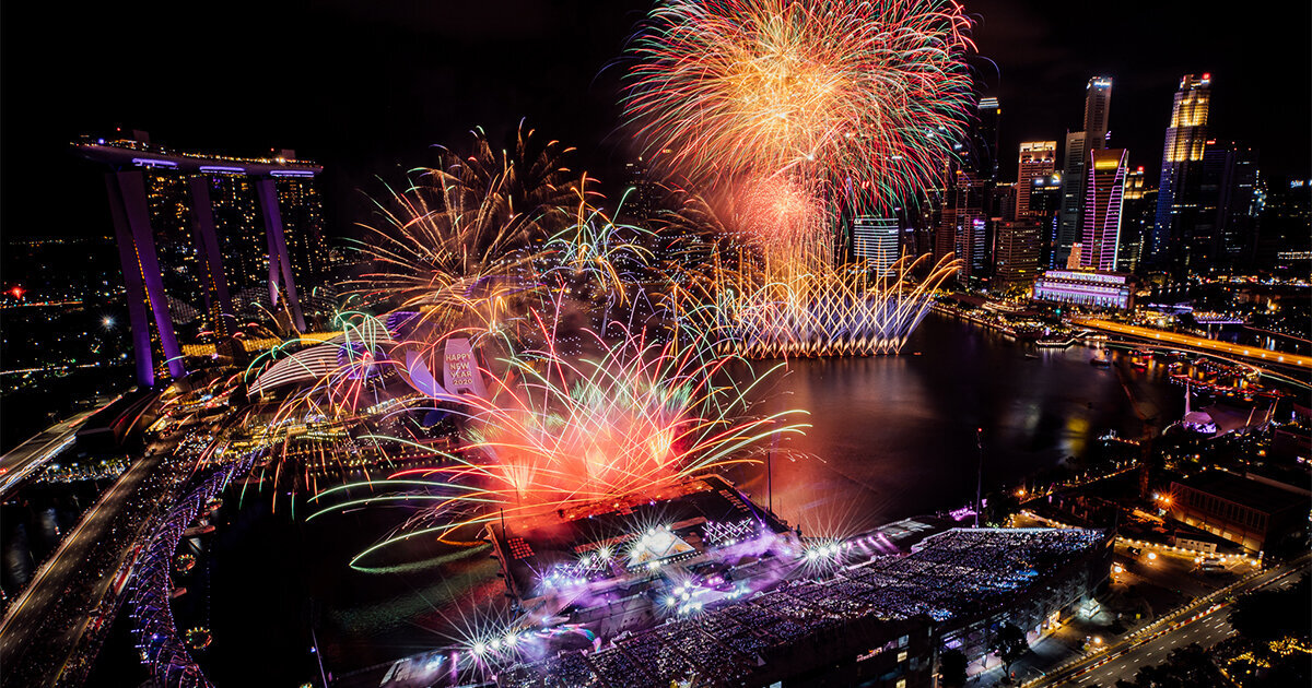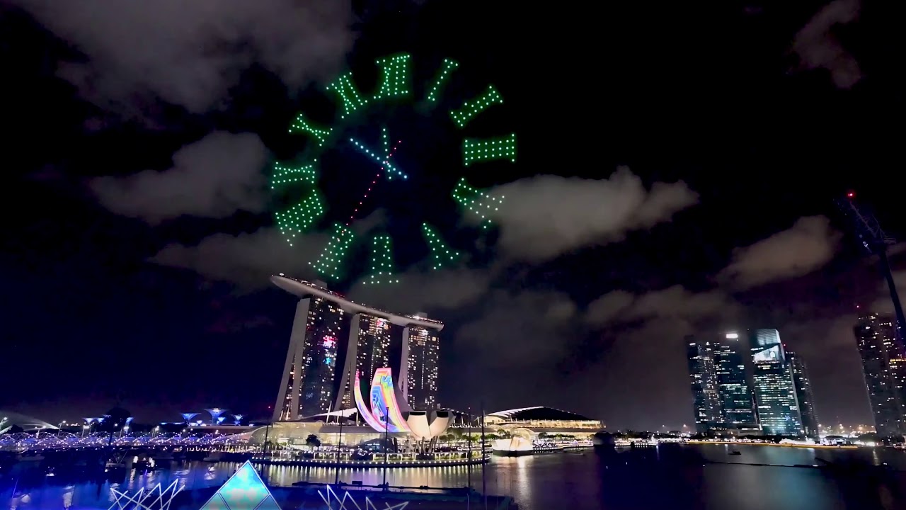 Все это происходит на всемирно известной набережной Marina Bay. Параллельно салюту там запускают шоу дронов, которые в завершение принимают форму часов, отсчитывающих время до наступления Нового года.