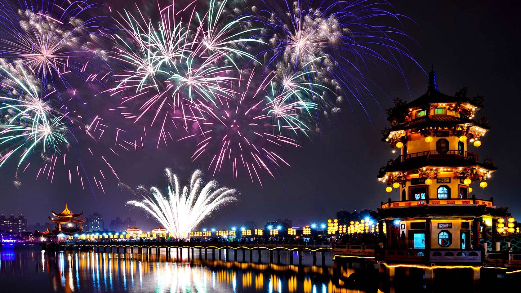 Отправляясь отмечать Новый год в Гонконг, нужно непременно побывать на набережной бухты Виктория. Именно там проходят самые масштабные мероприятия, которые из года в год становятся все более захватывающими и впечатляющими. Шоу начинается с эффектного салюта. Взмывая ввысь и отражаясь в воде, фейерверки будто удваиваются, окружая своим блеском все вокруг. Одновременно высоко в небо взлетают салюты, складывающиеся в огромного дракона, танцующего над Гонконгом.